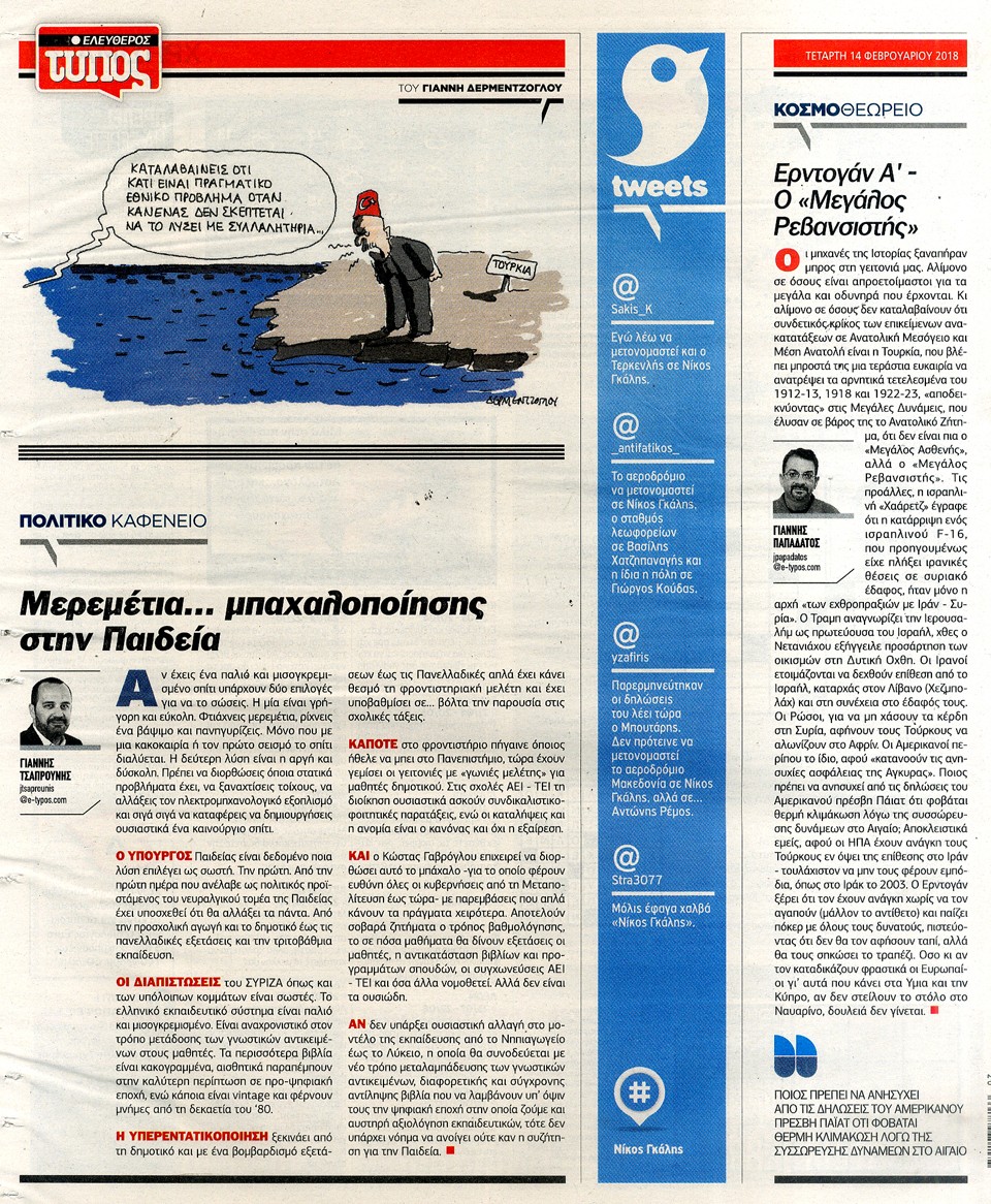 ΕΛΕΥΘΕΡΟΣ ΤΥΠΟΣ - 14 Φεβρουαρίου 2018