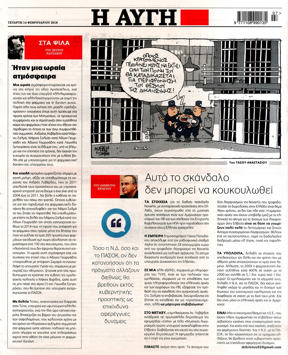 Η ΑΥΓΗ - 14 Φεβρουαρίου 2018