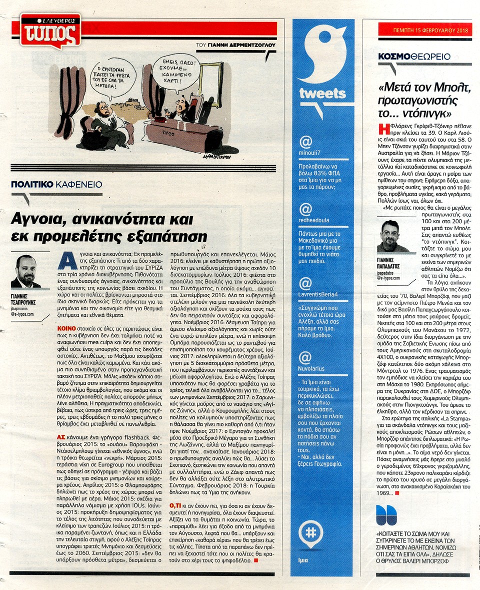ΕΛΕΥΘΕΡΟΣ ΤΥΠΟΣ - 15 Φεβρουαρίου 2018