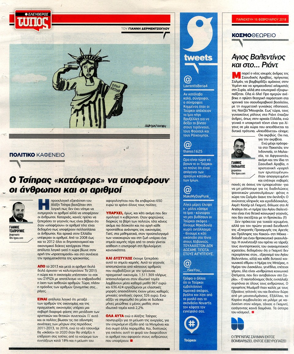 ΕΛΕΥΘΕΡΟΣ ΤΥΠΟΣ - 16 Φεβρουαρίου 2018