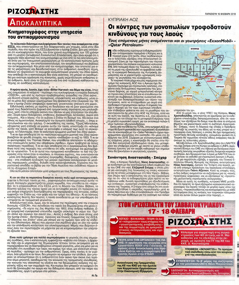 ΡΙΖΟΣΠΑΣΤΗΣ - 16 Φεβρουαρίου 2018