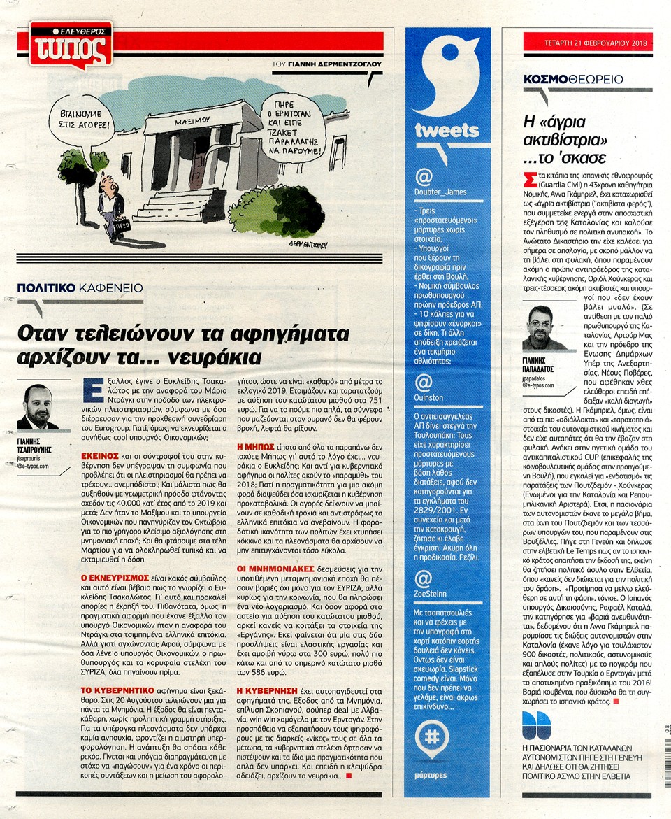 ΕΛΕΥΘΕΡΟΣ ΤΥΠΟΣ - 21 Φεβρουαρίου 2018