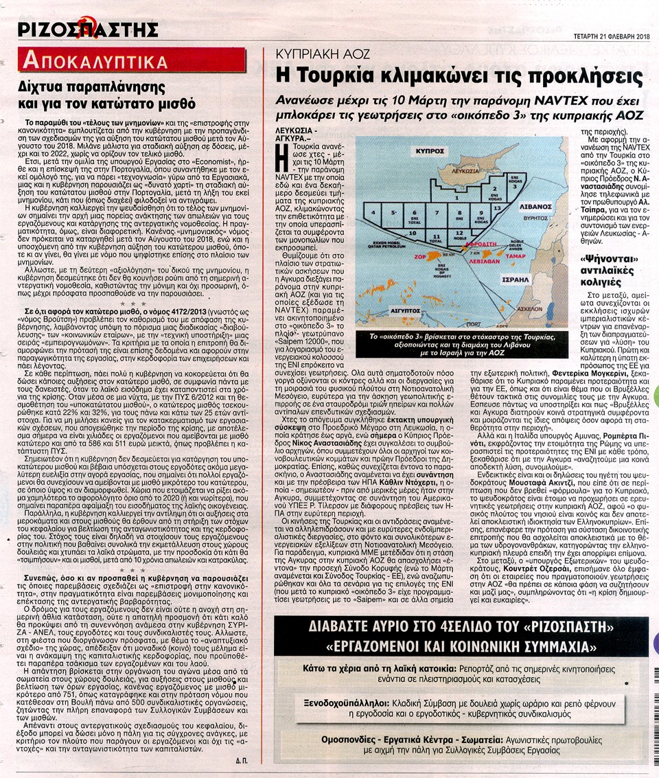 ΡΙΖΟΣΠΑΣΤΗΣ - 21 Φεβρουαρίου 2018