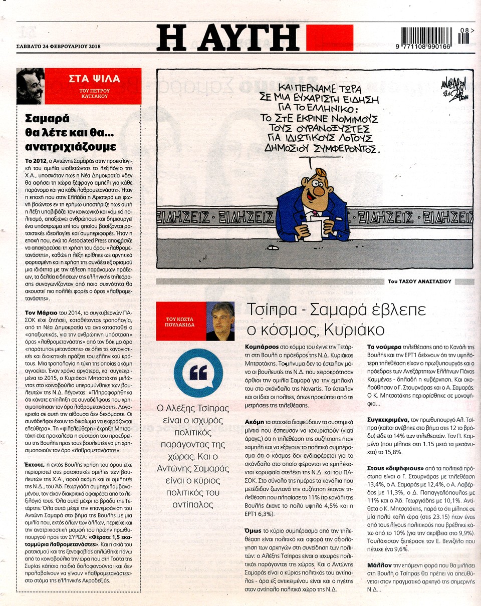 Η ΑΥΓΗ - 24 Φεβρουαρίου 2018