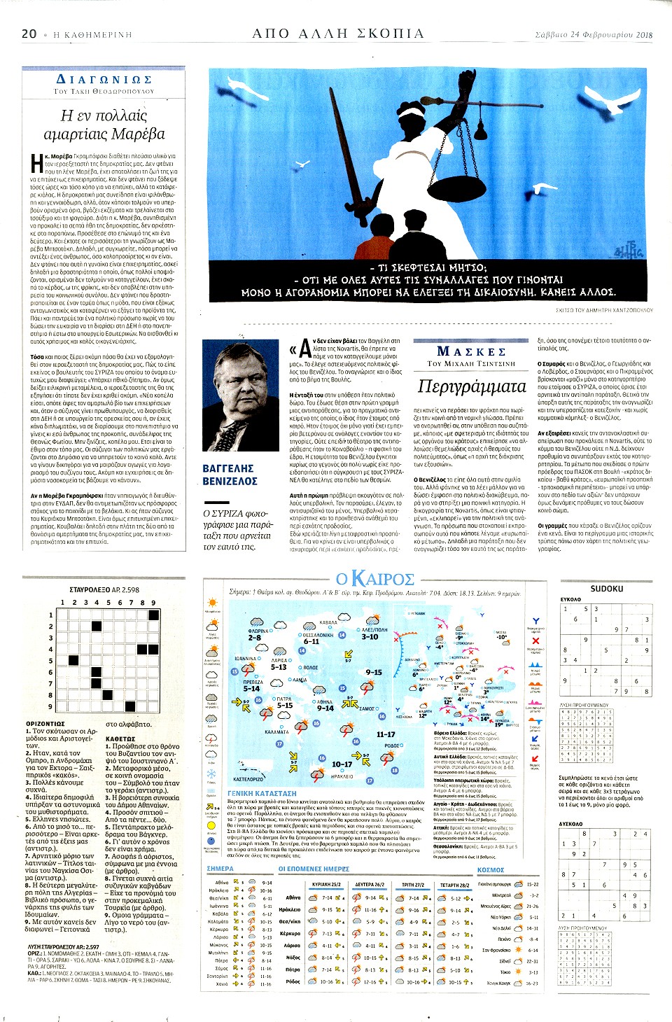 ΚΑΘΗΜΕΡΙΝΗ - 24 Φεβρουαρίου 2018