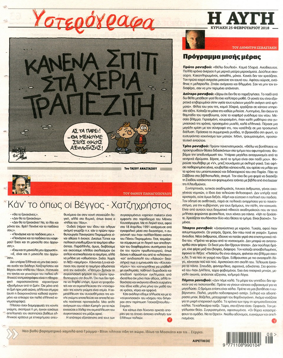 Η ΑΥΓΗ ΤΗΣ ΚΥΡΙΑΚΗΣ - 25 Φεβρουαρίου 2018