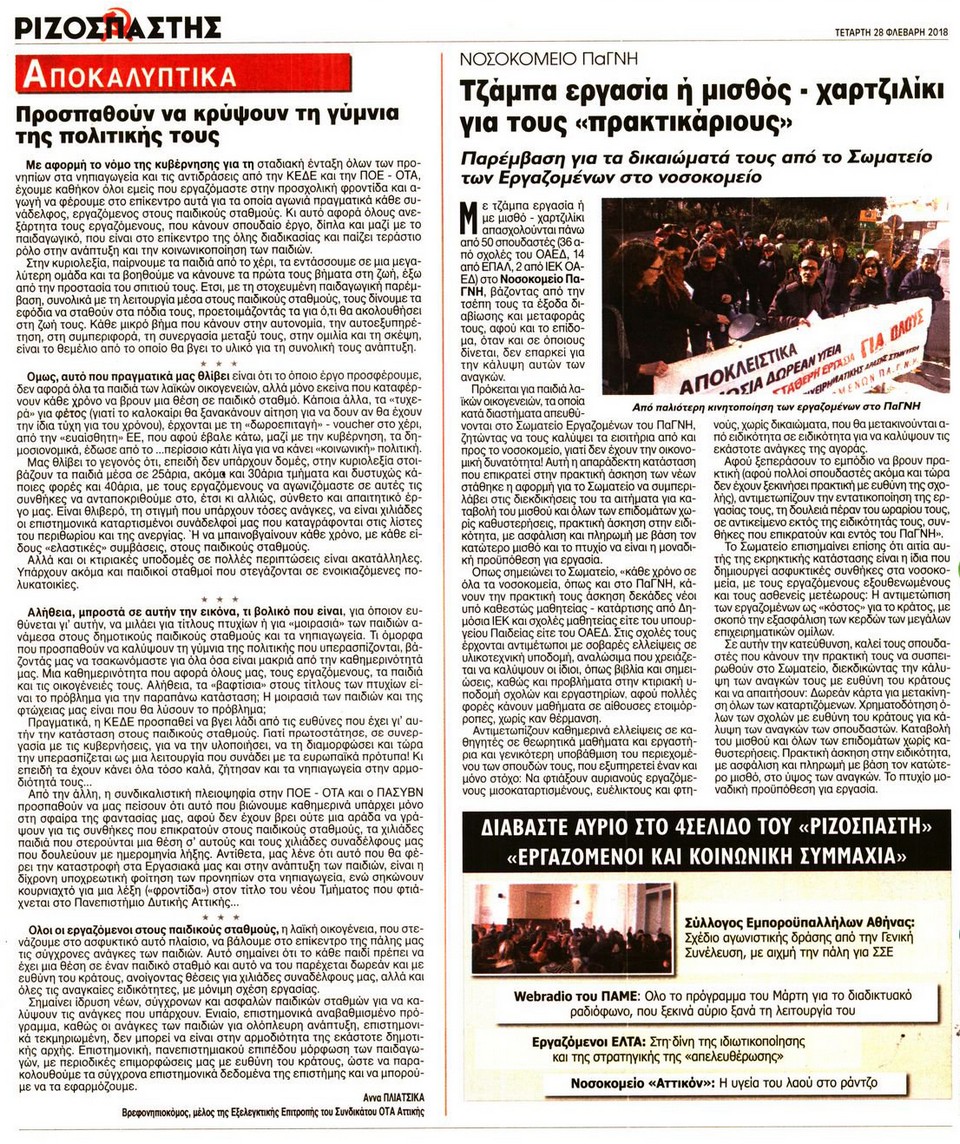 ΡΙΖΟΣΠΑΣΤΗΣ - 28 Φεβρουαρίου 2018