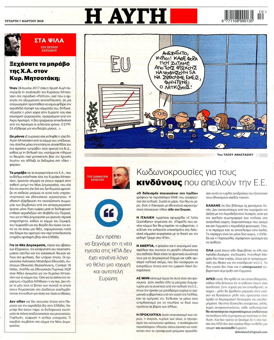 Η ΑΥΓΗ - 7 Μαρτίου 2018