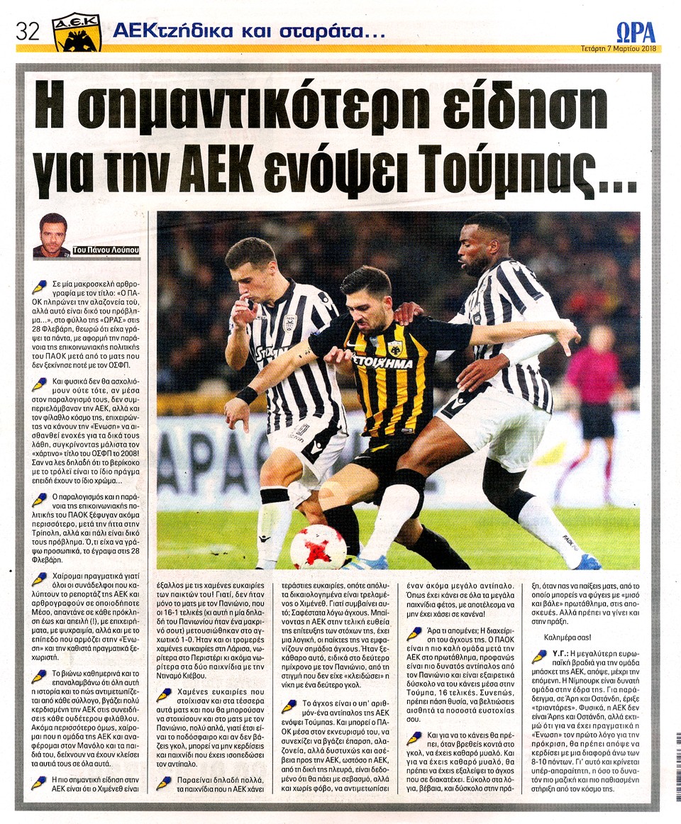 ΑΘΛΗΤΙΚΗ ΩΡΑ ΤΩΝ ΣΠΟΡ - 7 Μαρτίου 2018
