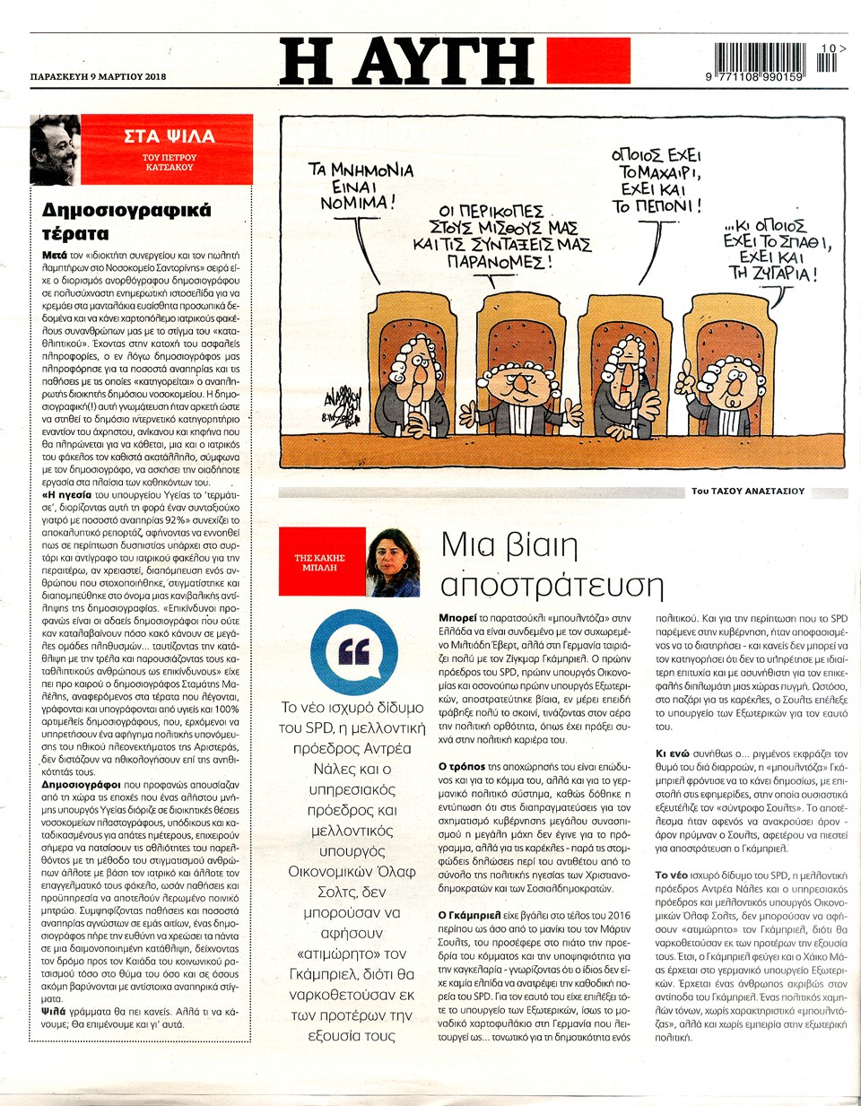 Η ΑΥΓΗ - 9 Μαρτίου 2018