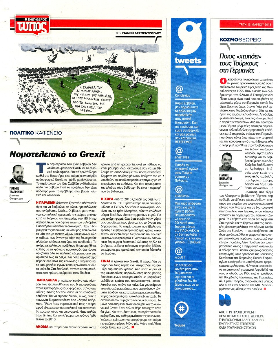 ΕΛΕΥΘΕΡΟΣ ΤΥΠΟΣ - 13 Μαρτίου 2018
