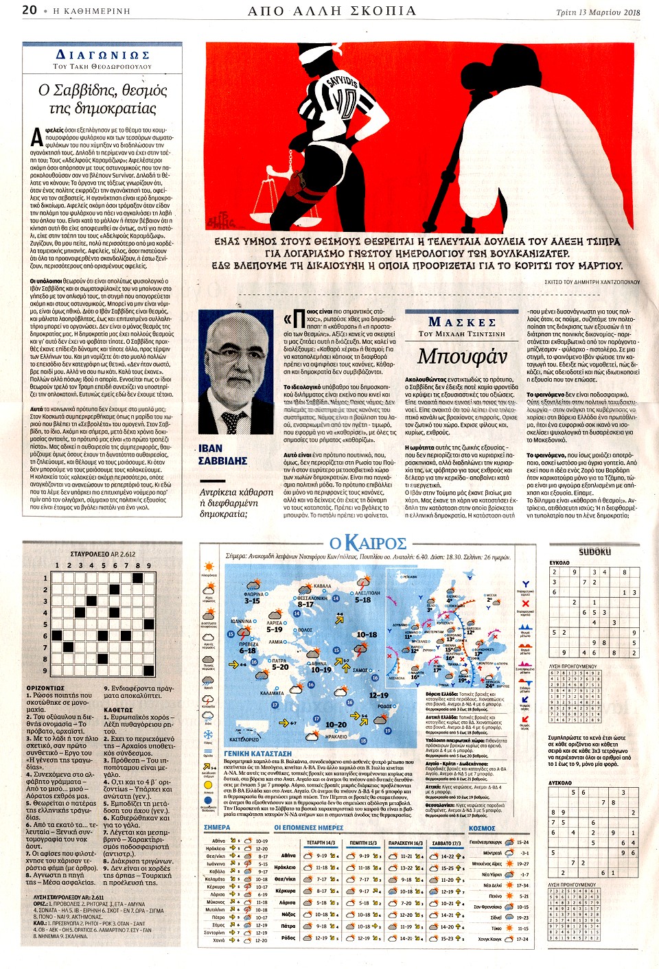 ΚΑΘΗΜΕΡΙΝΗ - 13 Μαρτίου 2018