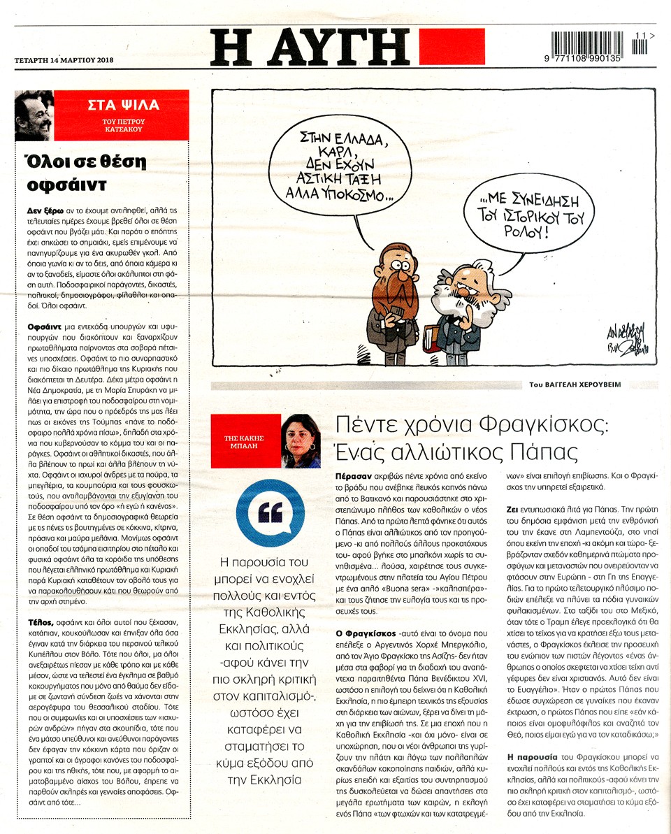 Η ΑΥΓΗ - 14 Μαρτίου 2018