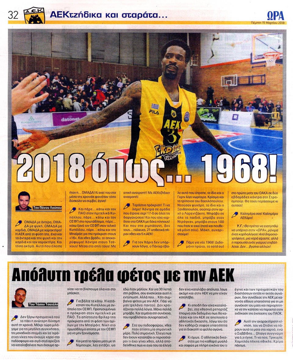 ΑΘΛΗΤΙΚΗ ΩΡΑ ΤΩΝ ΣΠΟΡ - 15 Μαρτίου 2018