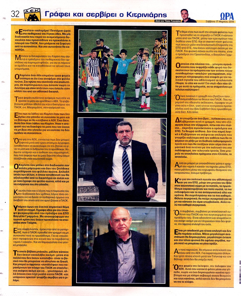 ΑΘΛΗΤΙΚΗ ΩΡΑ ΤΩΝ ΣΠΟΡ - 17 Μαρτίου 2018
