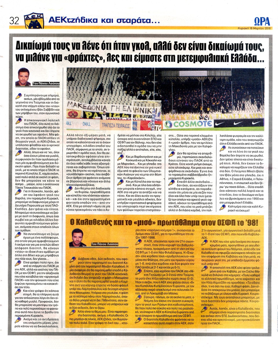 ΑΘΛΗΤΙΚΗ ΩΡΑ ΤΩΝ ΣΠΟΡ - 18 Μαρτίου 2018