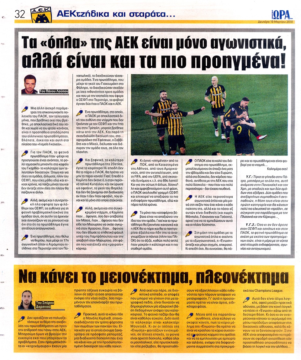 ΑΘΛΗΤΙΚΗ ΩΡΑ ΤΩΝ ΣΠΟΡ - 19 Μαρτίου 2018