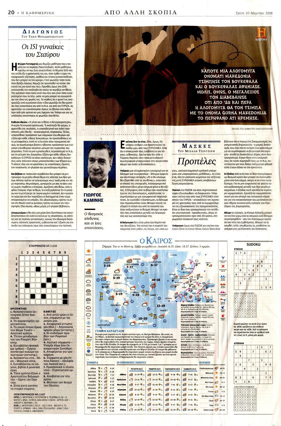 ΚΑΘΗΜΕΡΙΝΗ - 20 Μαρτίου 2018
