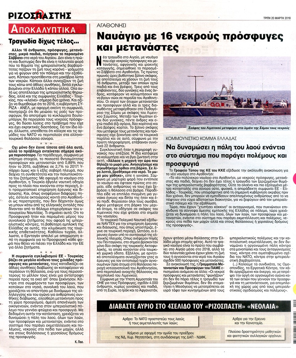 ΡΙΖΟΣΠΑΣΤΗΣ - 20 Μαρτίου 2018
