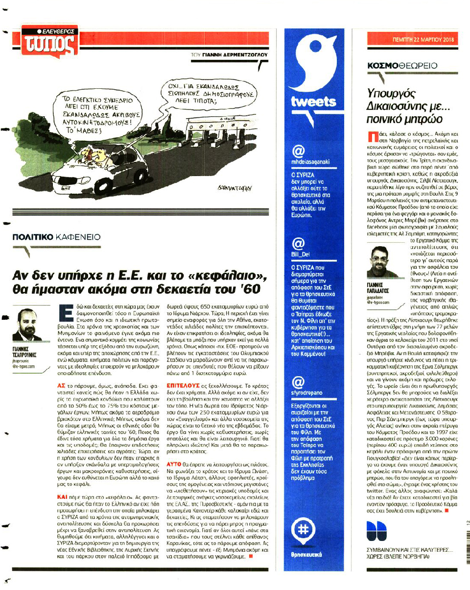 ΕΛΕΥΘΕΡΟΣ ΤΥΠΟΣ - 22 Μαρτίου 2018
