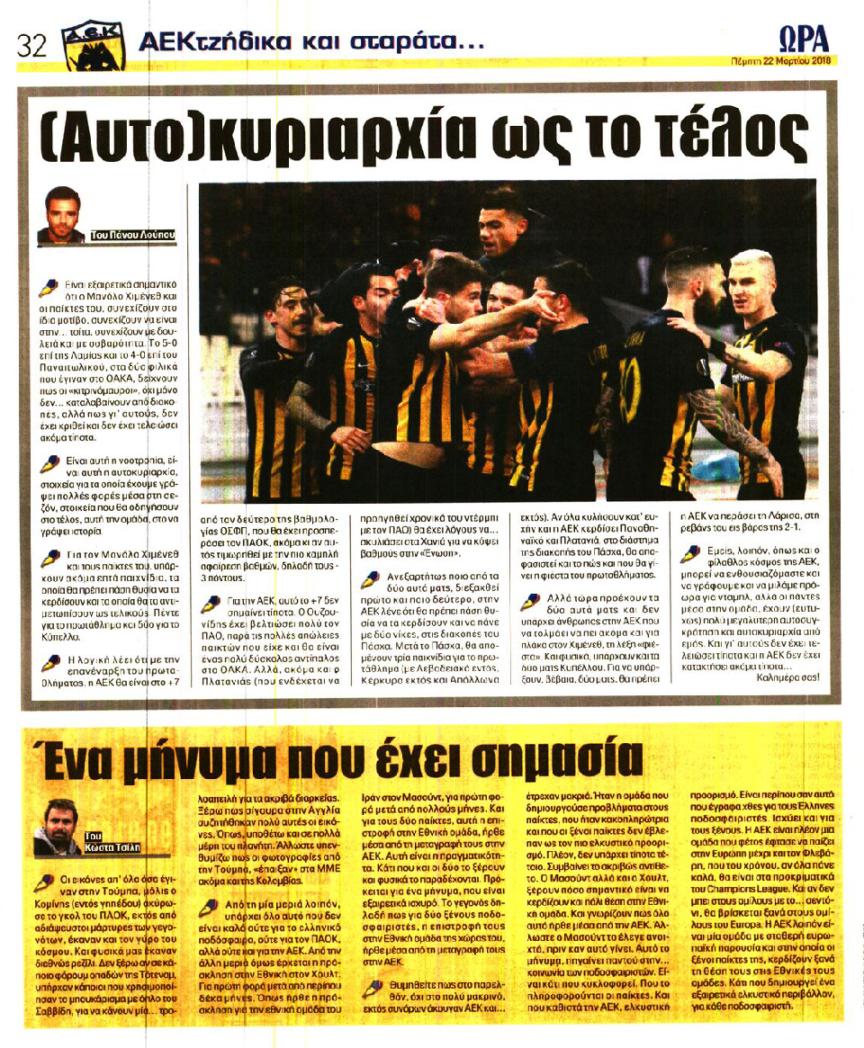 ΑΘΛΗΤΙΚΗ ΩΡΑ ΤΩΝ ΣΠΟΡ - 22 Μαρτίου 2018