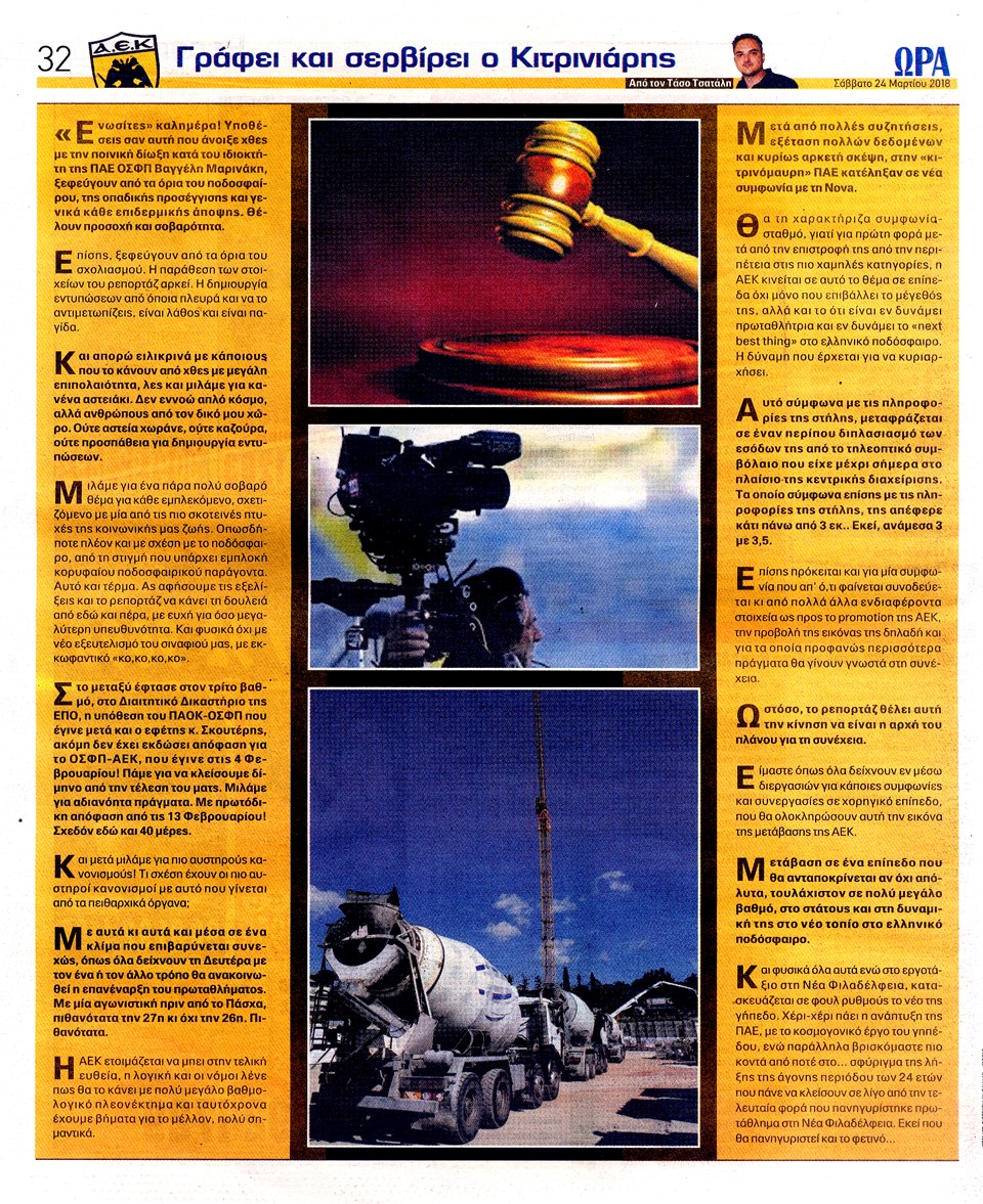 ΑΘΛΗΤΙΚΗ ΩΡΑ ΤΩΝ ΣΠΟΡ - 24 Μαρτίου 2018