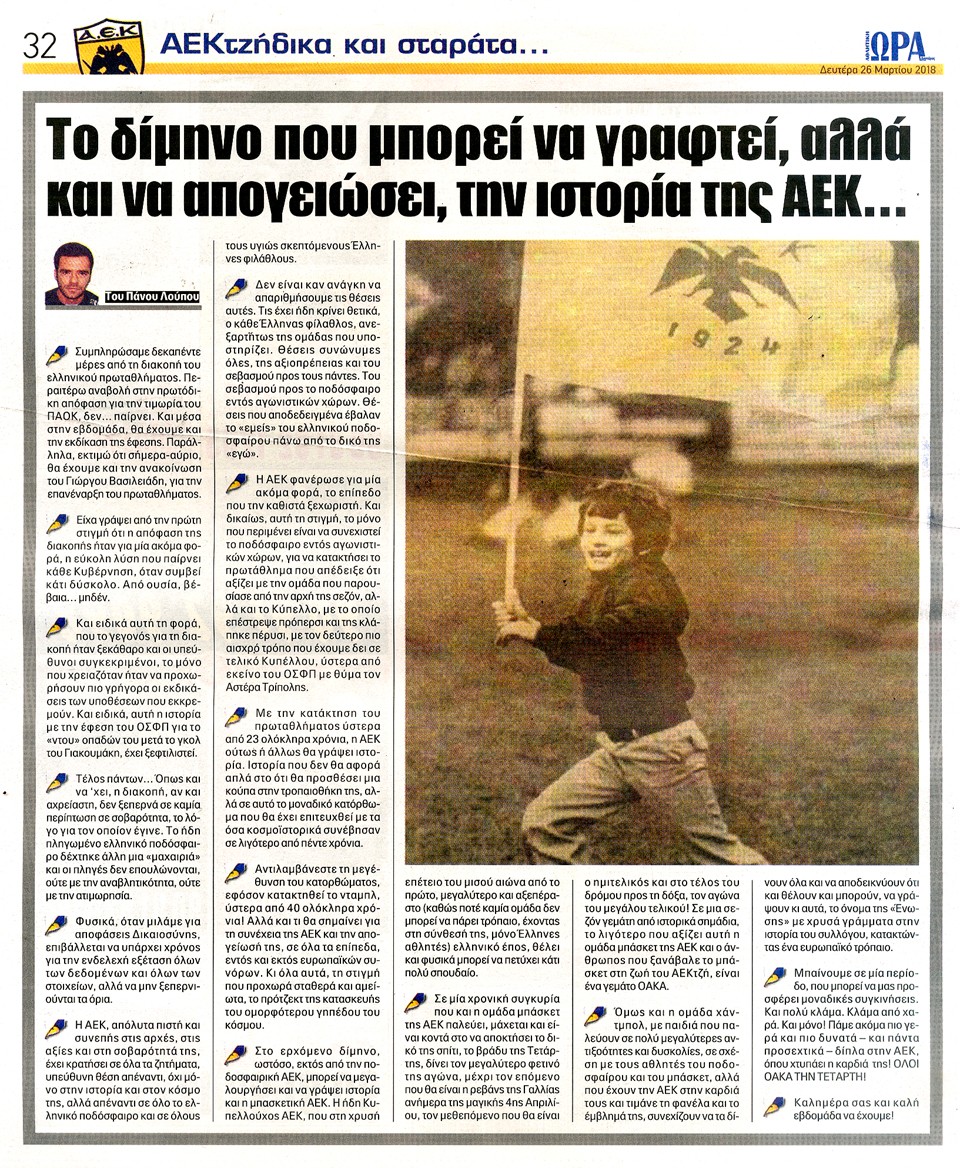 ΑΘΛΗΤΙΚΗ ΩΡΑ ΤΩΝ ΣΠΟΡ - 26 Μαρτίου 2018
