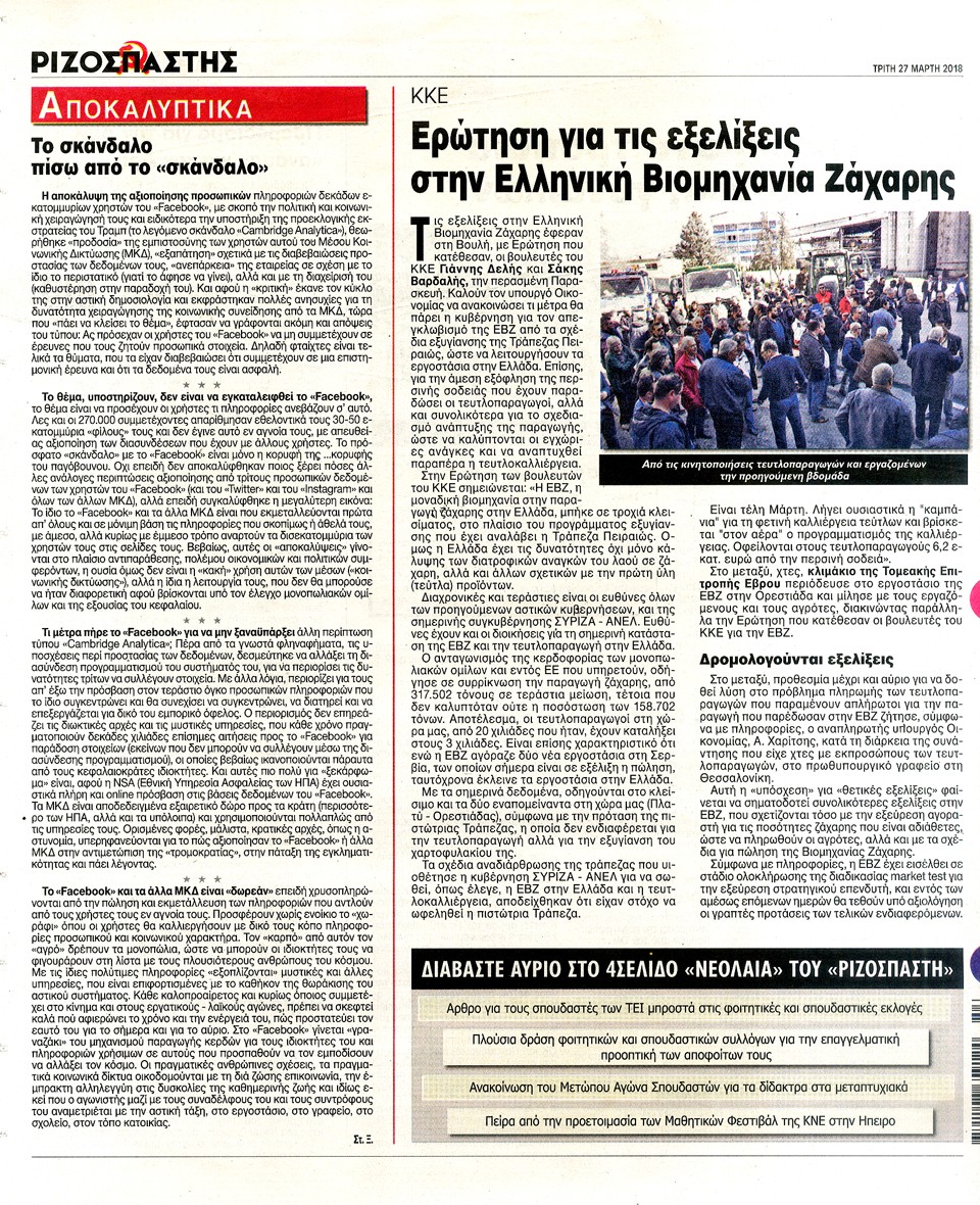 ΡΙΖΟΣΠΑΣΤΗΣ - 27 Μαρτίου 2018