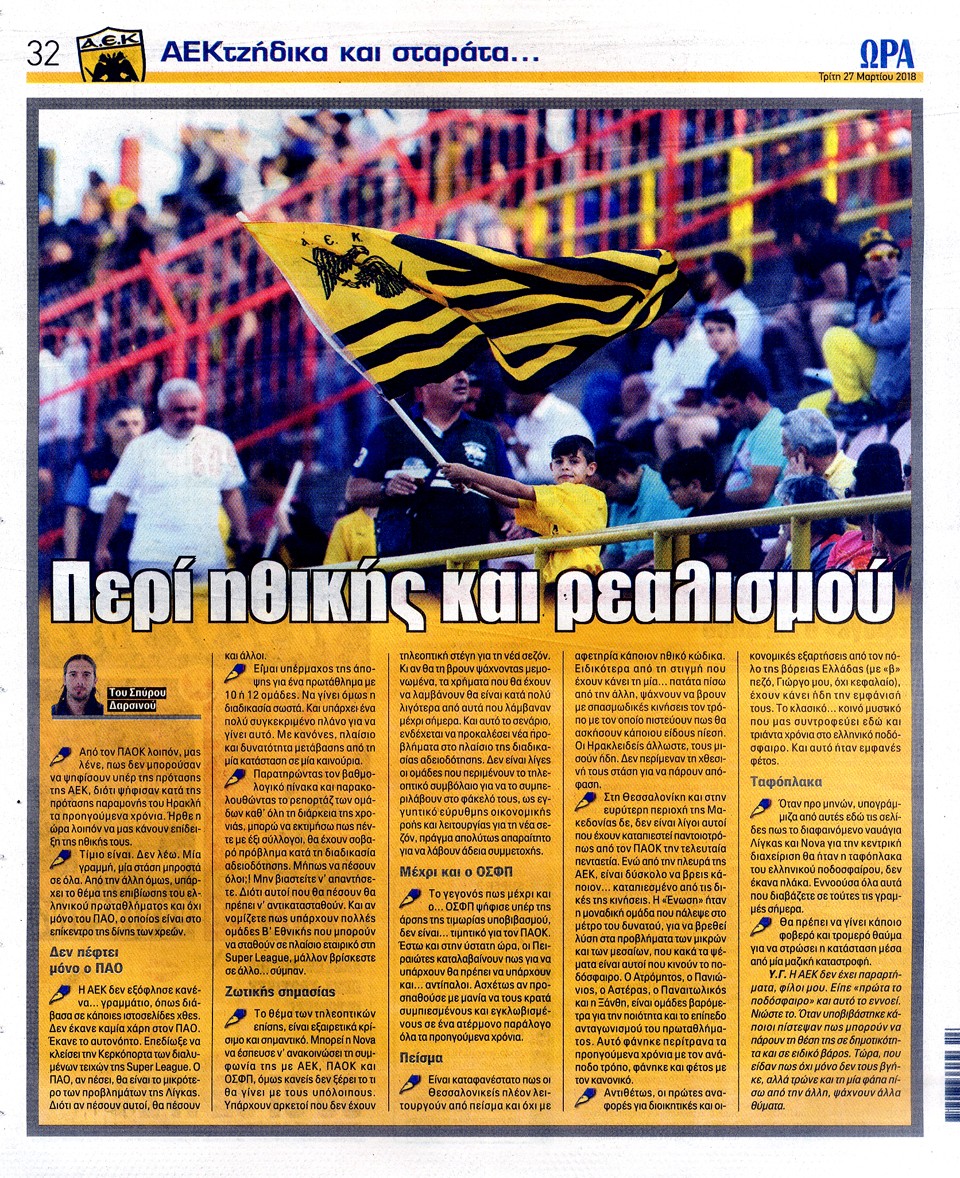 ΑΘΛΗΤΙΚΗ ΩΡΑ ΤΩΝ ΣΠΟΡ - 27 Μαρτίου 2018