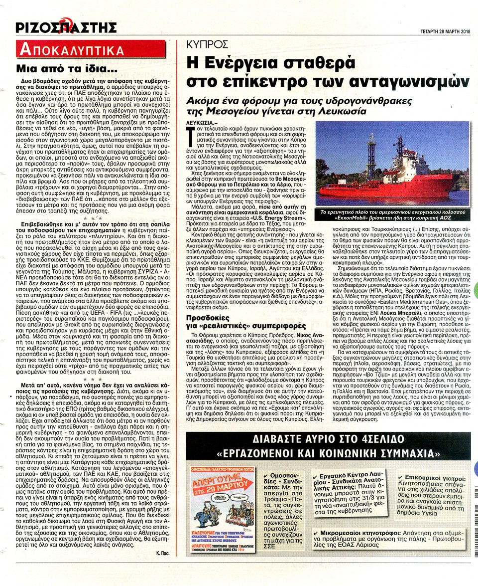 ΡΙΖΟΣΠΑΣΤΗΣ - 28 Μαρτίου 2018