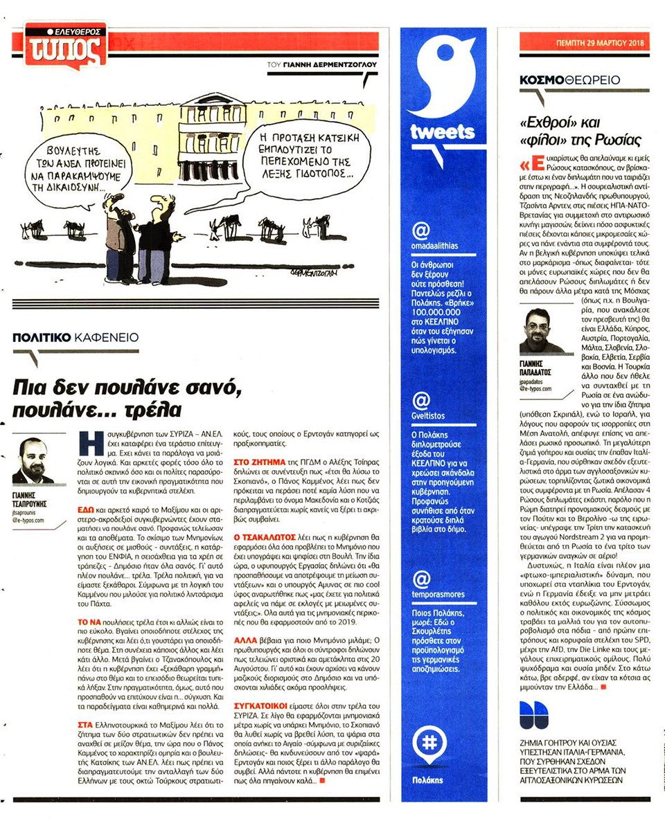 ΕΛΕΥΘΕΡΟΣ ΤΥΠΟΣ - 29 Μαρτίου 2018