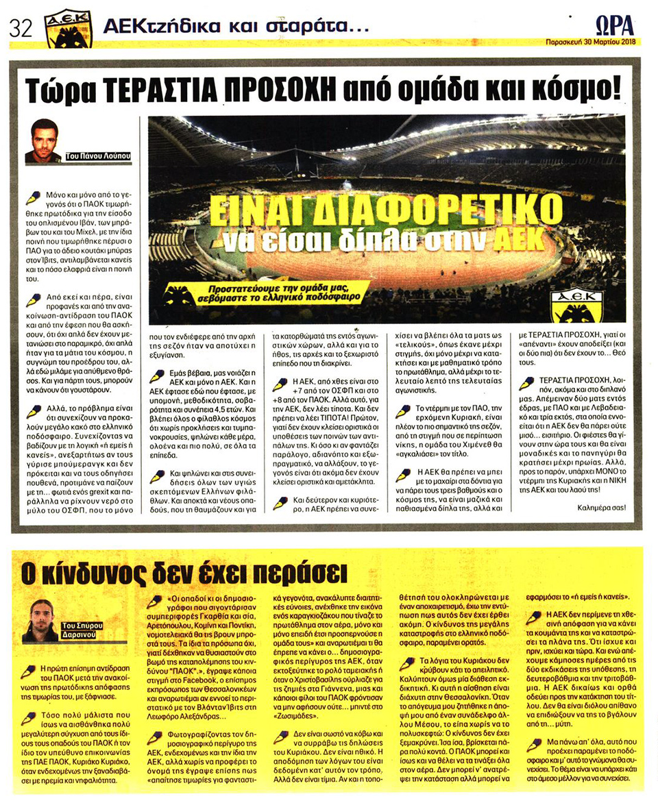 ΑΘΛΗΤΙΚΗ ΩΡΑ ΤΩΝ ΣΠΟΡ - 30 Μαρτίου 2018