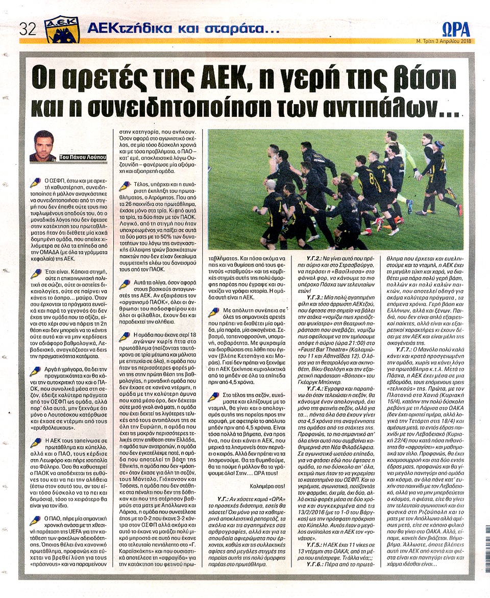 ΑΘΛΗΤΙΚΗ ΩΡΑ ΤΩΝ ΣΠΟΡ - 3 Απριλίου 2018