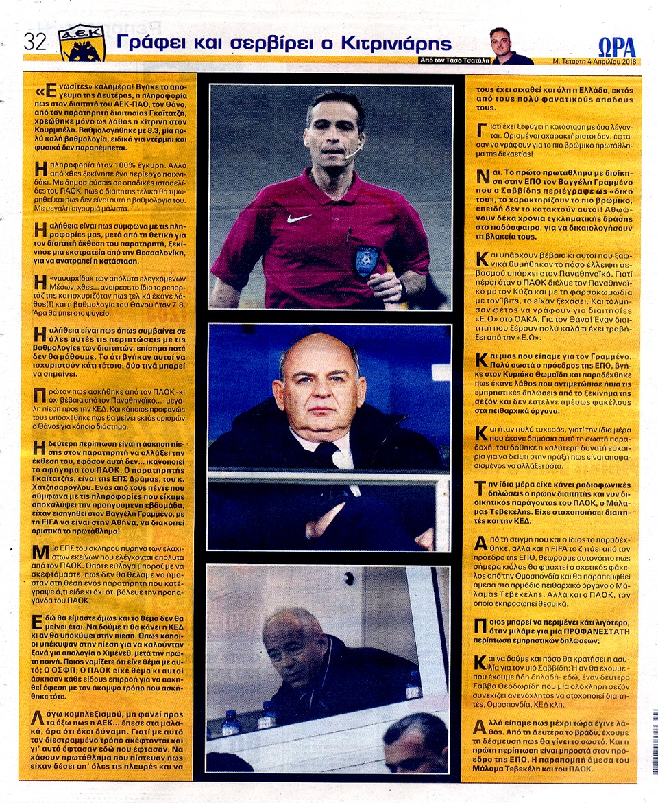 ΑΘΛΗΤΙΚΗ ΩΡΑ ΤΩΝ ΣΠΟΡ - 4 Απριλίου 2018