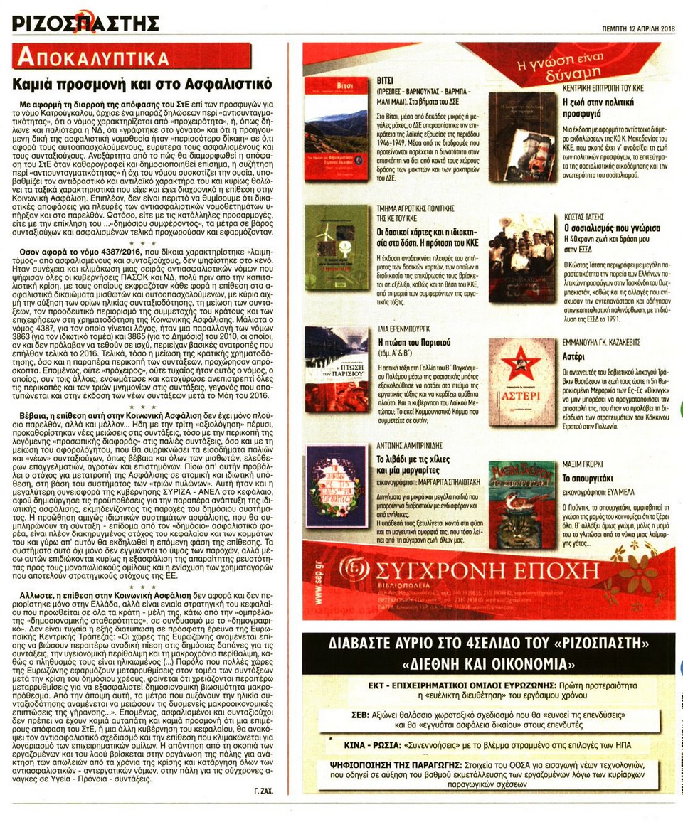 ΡΙΖΟΣΠΑΣΤΗΣ - 12 Απριλίου 2018