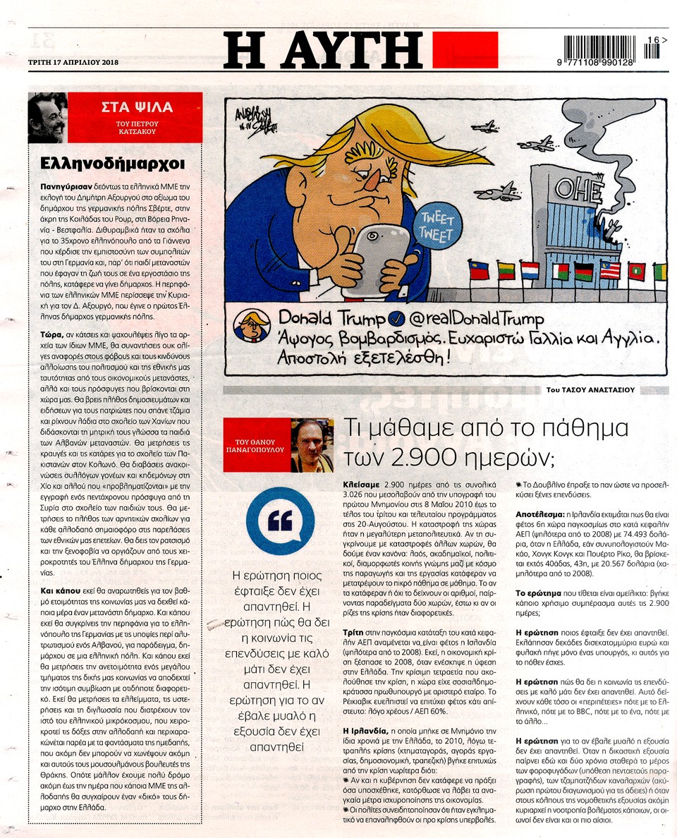 Η ΑΥΓΗ - 17 Απριλίου 2018