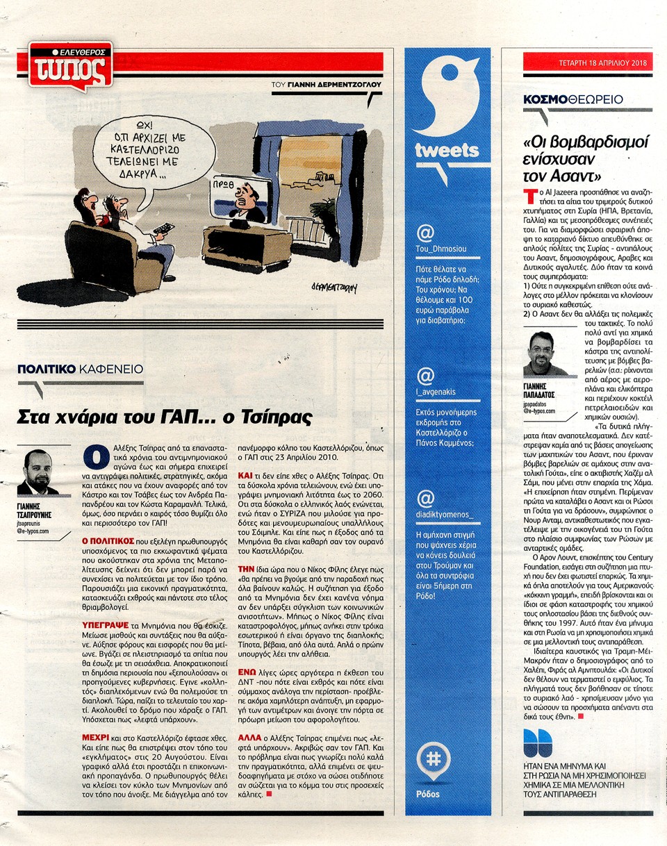 ΕΛΕΥΘΕΡΟΣ ΤΥΠΟΣ - 18 Απριλίου 2018