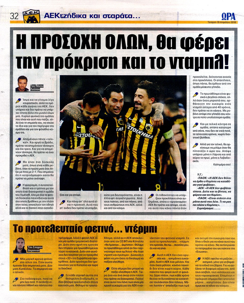 ΑΘΛΗΤΙΚΗ ΩΡΑ ΤΩΝ ΣΠΟΡ - 18 Απριλίου 2018