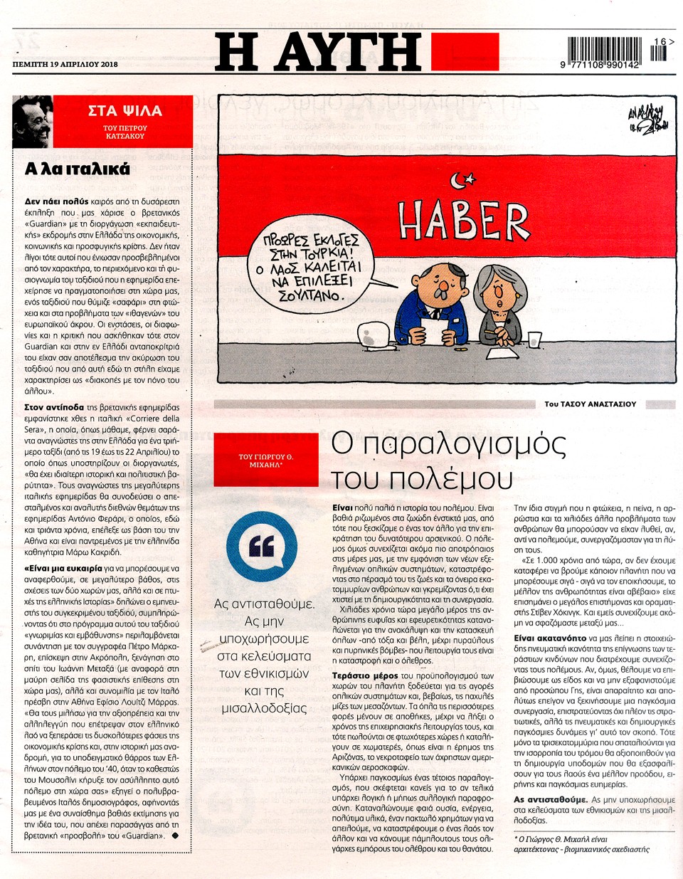 Η ΑΥΓΗ - 19 Απριλίου 2018