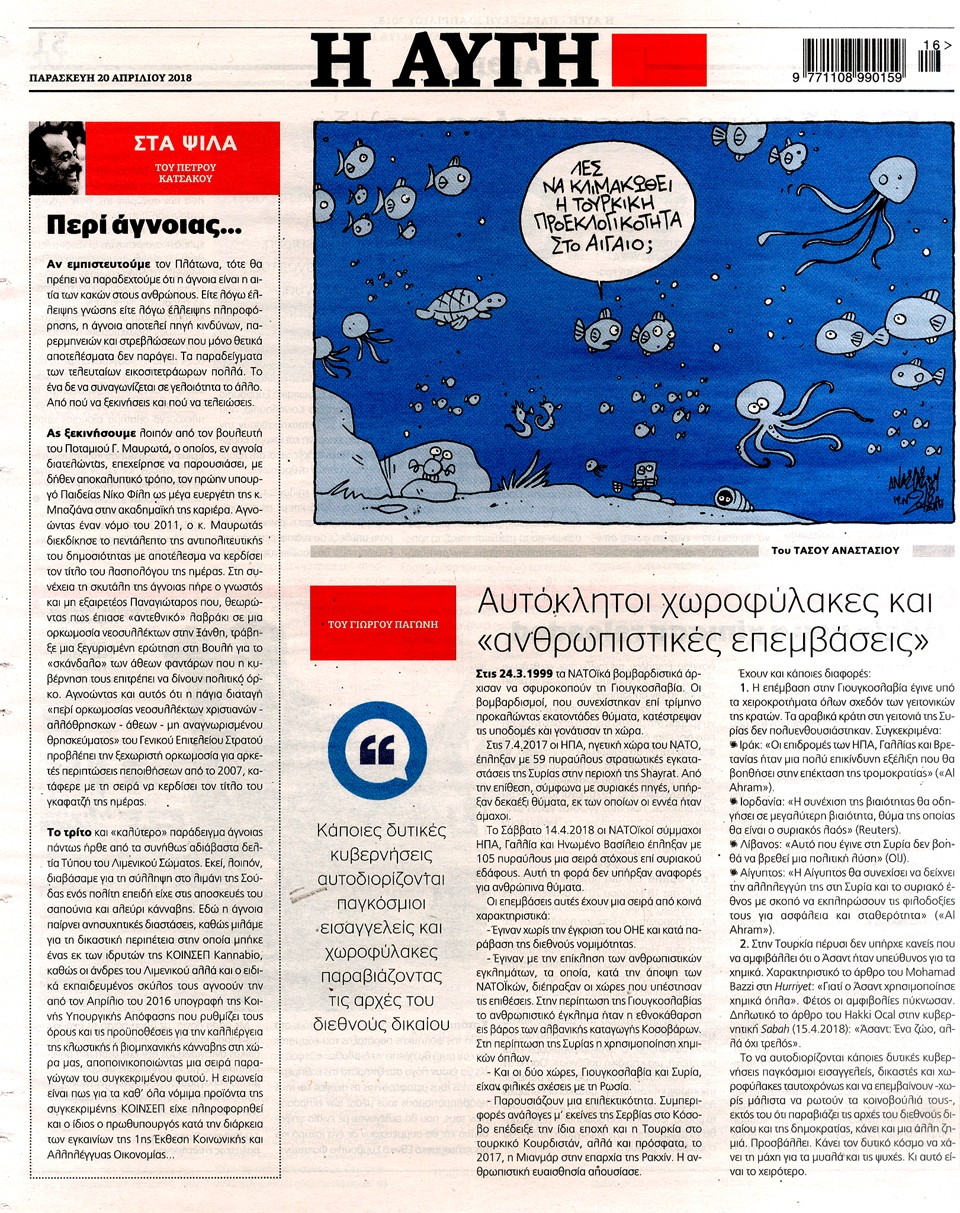 Η ΑΥΓΗ - 20 Απριλίου 2018