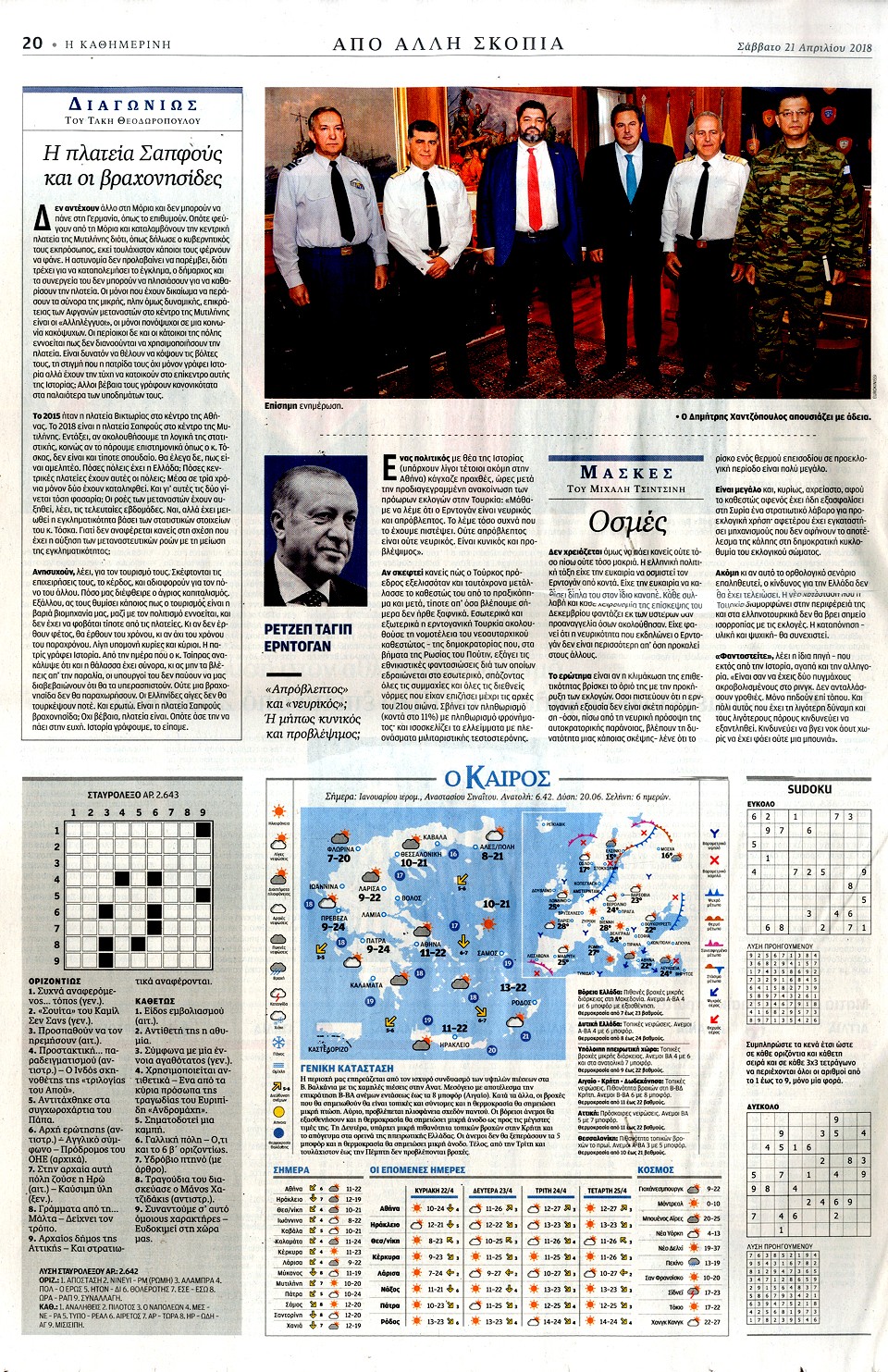 ΚΑΘΗΜΕΡΙΝΗ - 21 Απριλίου 2018