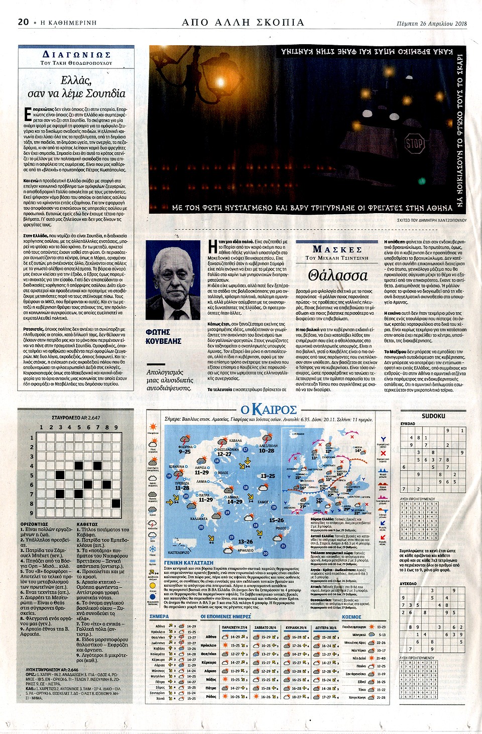 ΚΑΘΗΜΕΡΙΝΗ - 26 Απριλίου 2018