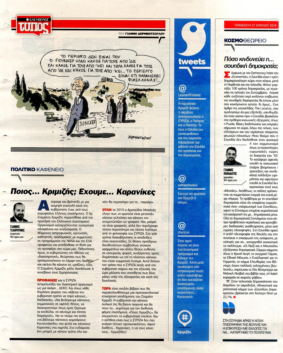 ΕΛΕΥΘΕΡΟΣ ΤΥΠΟΣ - 27 Απριλίου 2018
