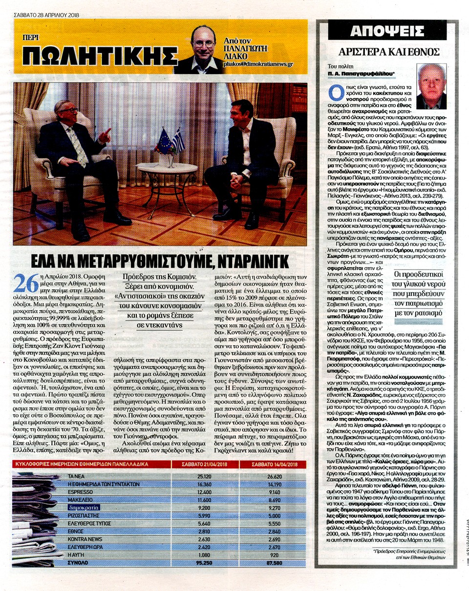 ΔΗΜΟΚΡΑΤΙΑ - 28 Απριλίου 2018
