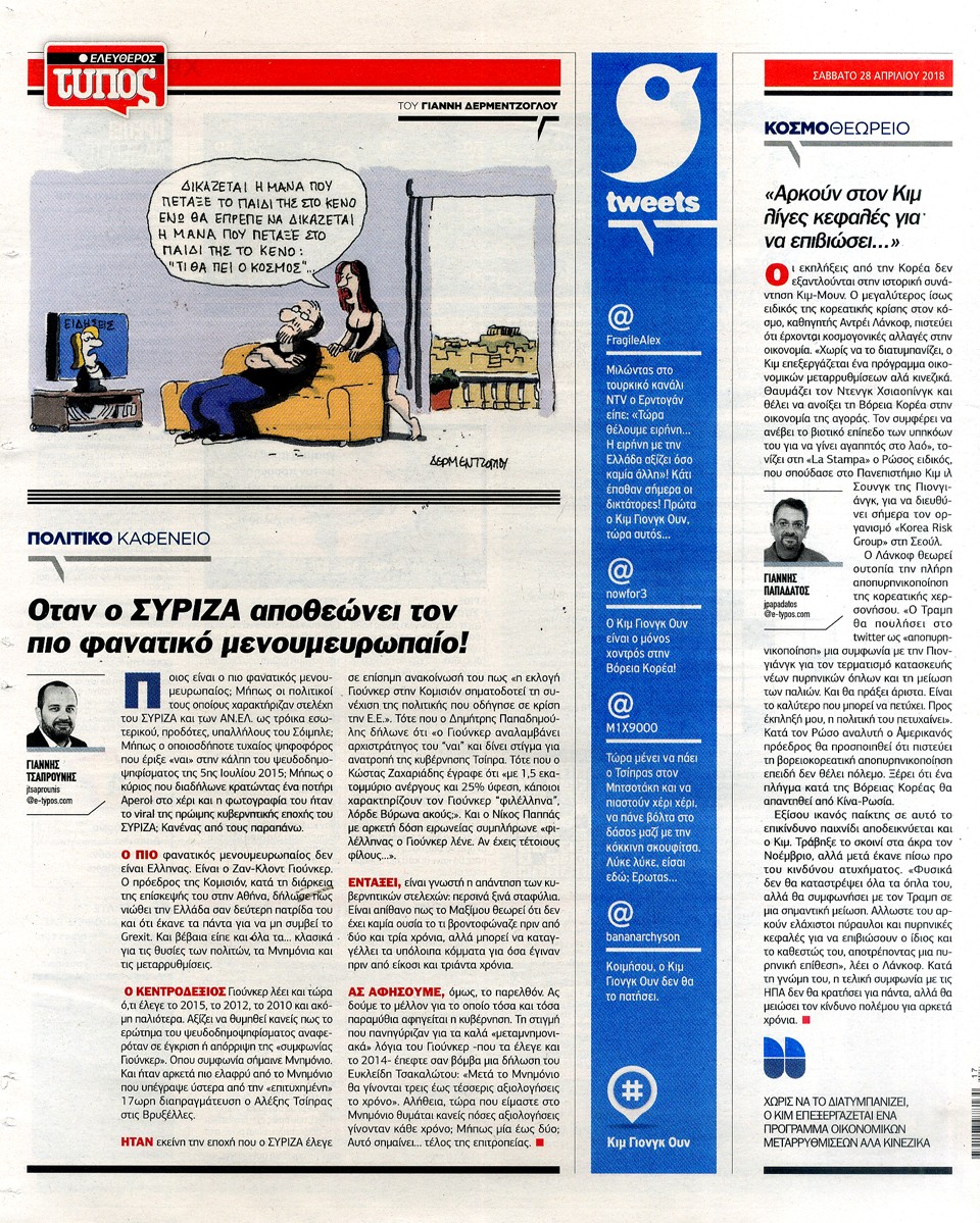 ΕΛΕΥΘΕΡΟΣ ΤΥΠΟΣ - 28 Απριλίου 2018