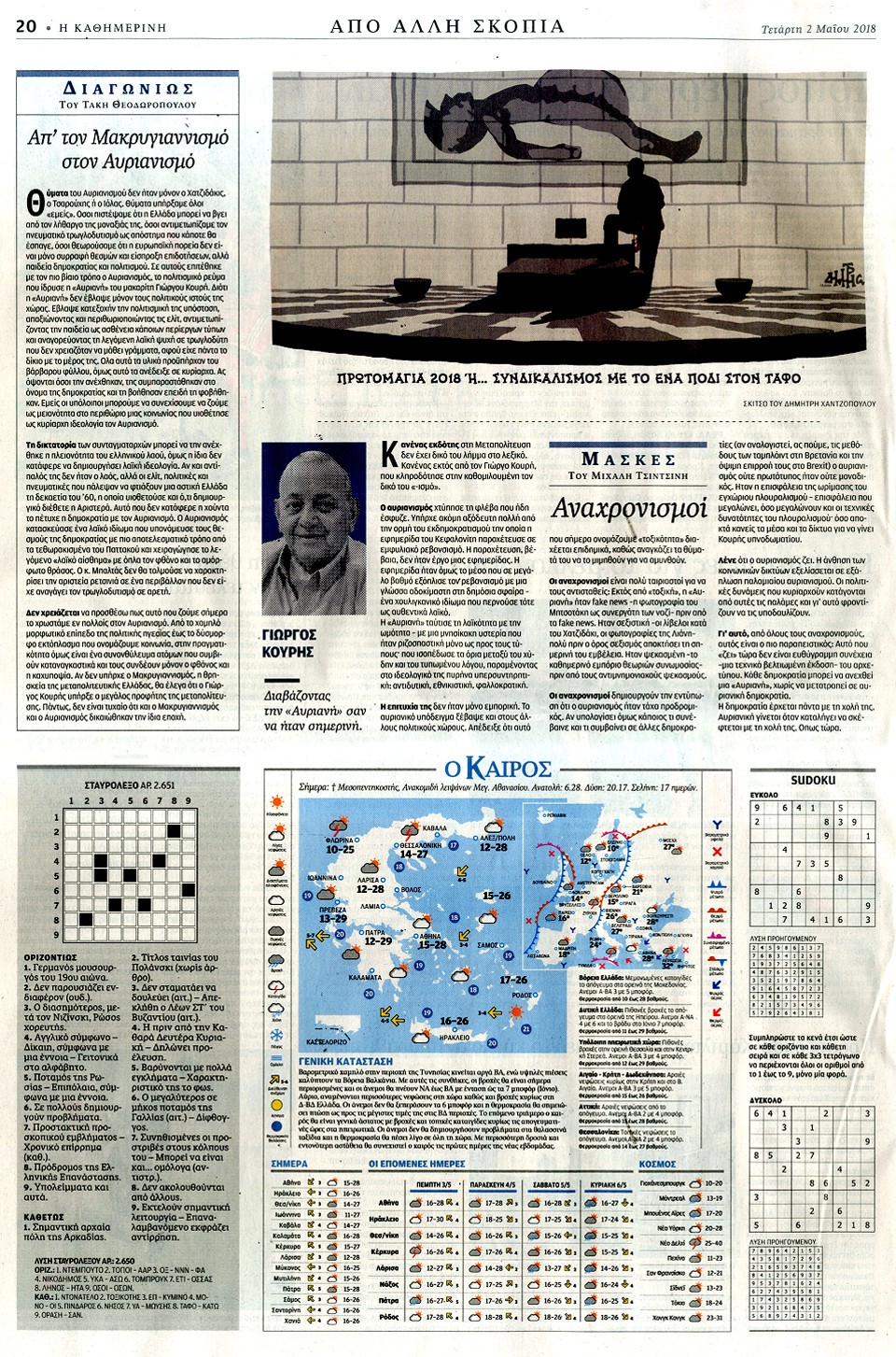 ΚΑΘΗΜΕΡΙΝΗ - 2 Μαΐου 2018