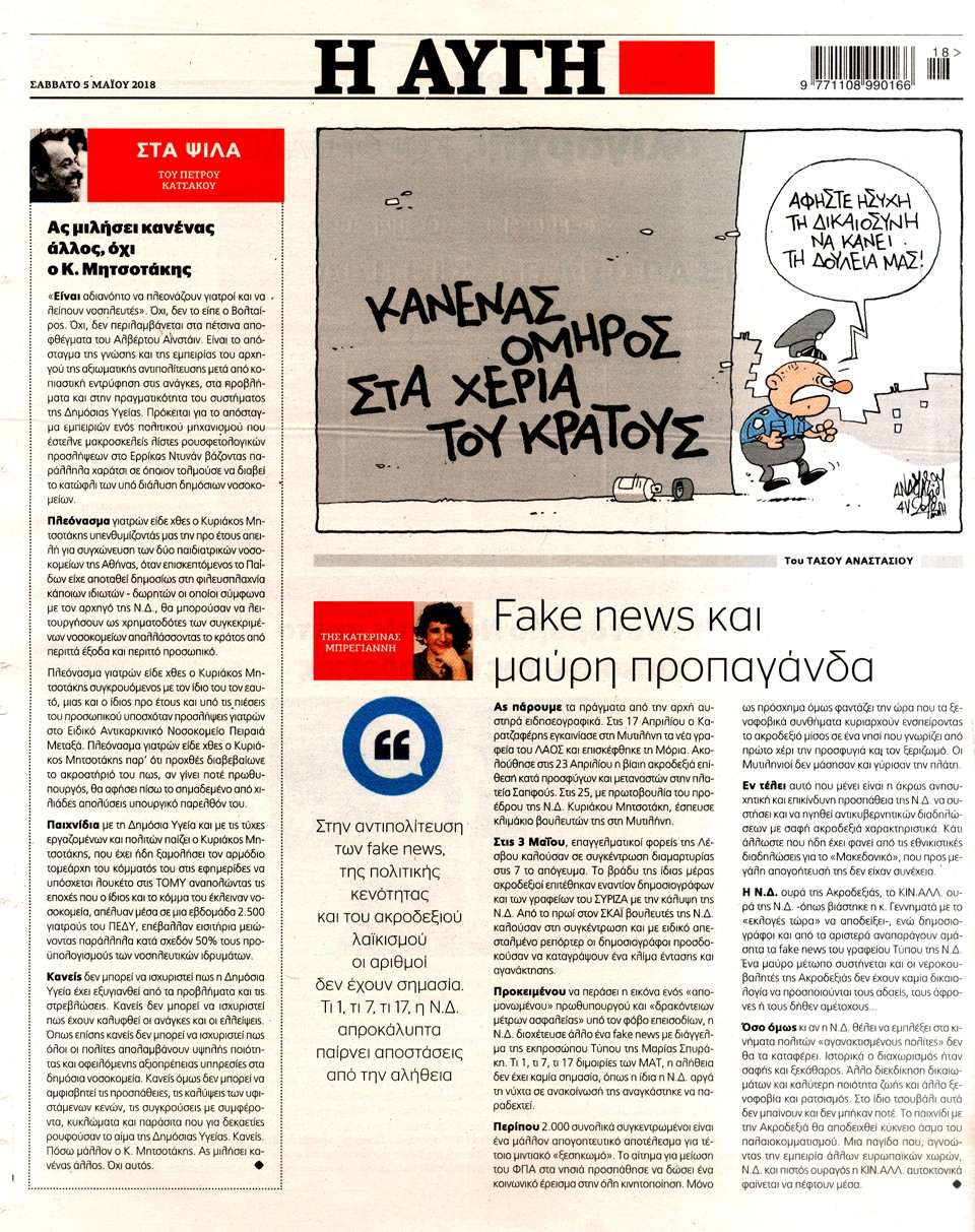 Η ΑΥΓΗ - 5 Μαΐου 2018