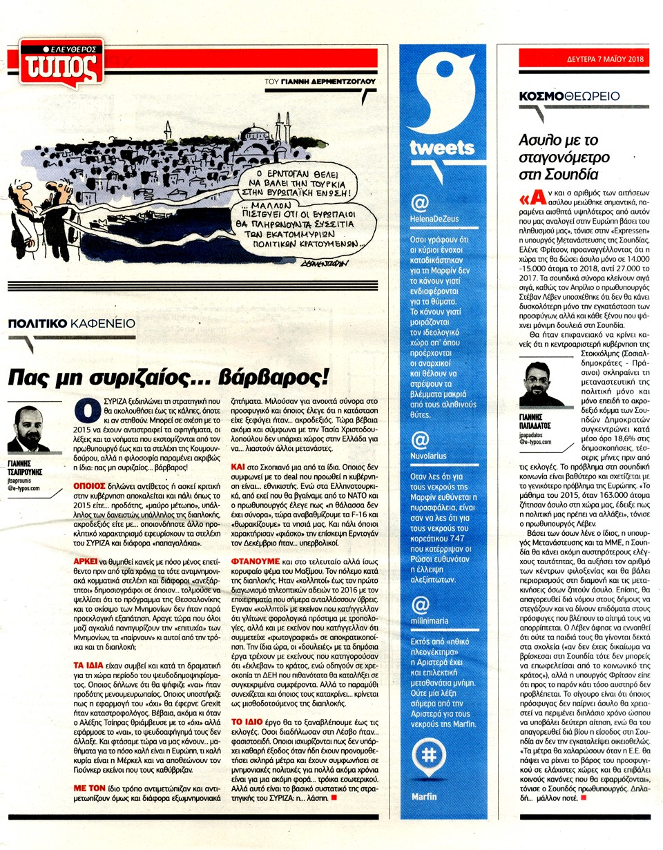 ΕΛΕΥΘΕΡΟΣ ΤΥΠΟΣ - 7 Μαΐου 2018