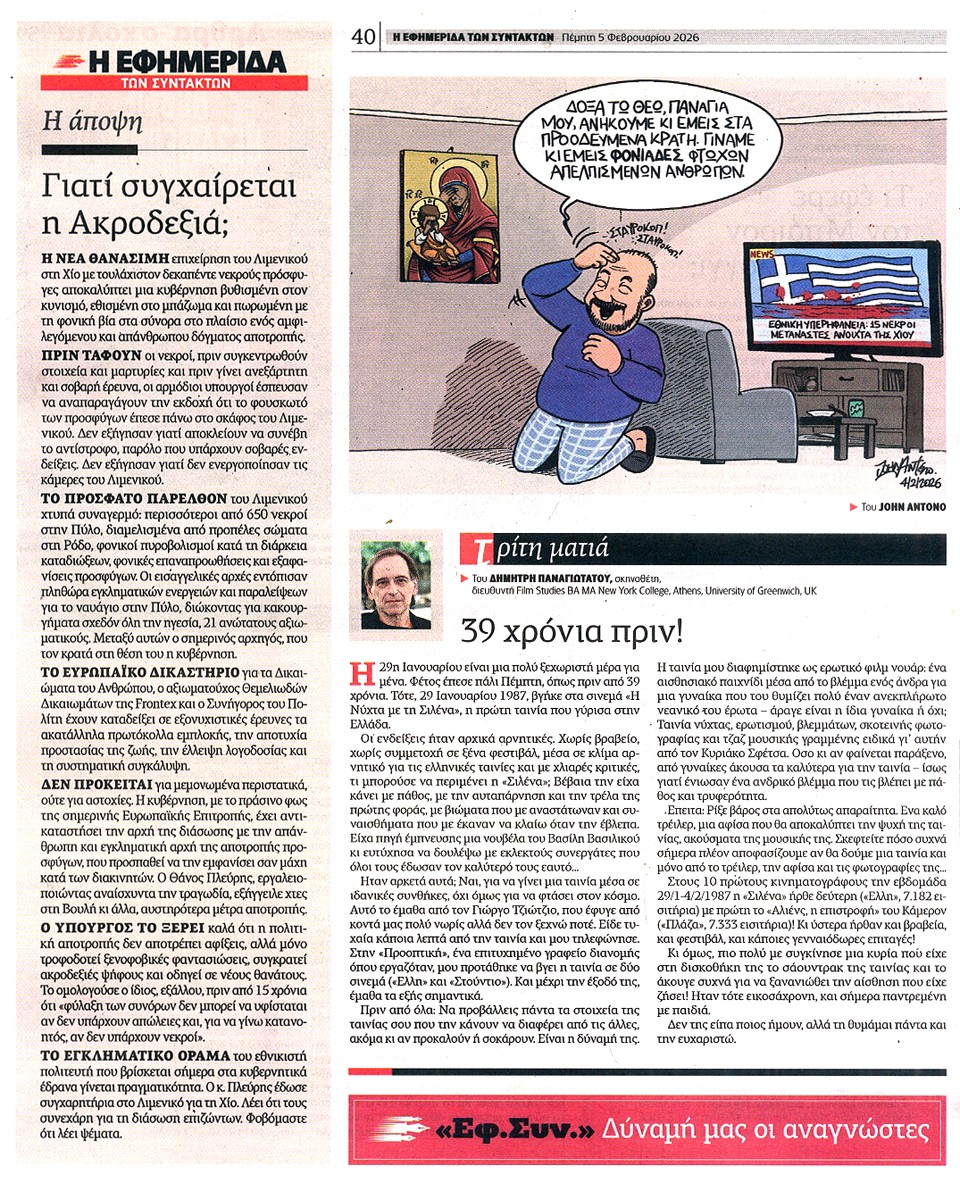 Η ΕΦΗΜΕΡΙΔΑ ΤΩΝ ΣΥΝΤΑΚΤΩΝ - 05 Φεβρουαρίου 2026