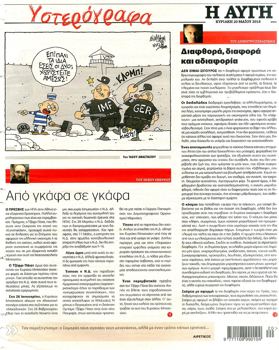 Η ΑΥΓΗ ΤΗΣ ΚΥΡΙΑΚΗΣ - 20 Μαΐου 2018